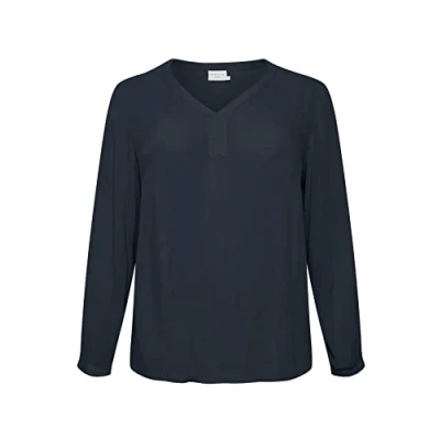 Kaffe Curve Women's Plus Size Blouse Long Sleeves V Neck, Midnight Marine, 24