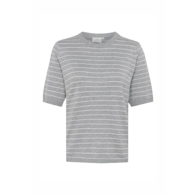 Kaffe Lizza Striped Print Tshirt, Women's, Size: Medium, Feather grey mel chalk stripe