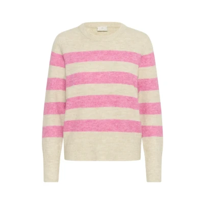 Kaffe Striped Jumper, Women's, Size: Small, Feather gray mel pink melange