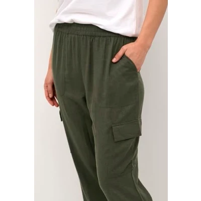 KAFFE Women's Cargo Pants Waist Cropped Length Regular Fit Elastic Cuffs, Forest Night, 6
