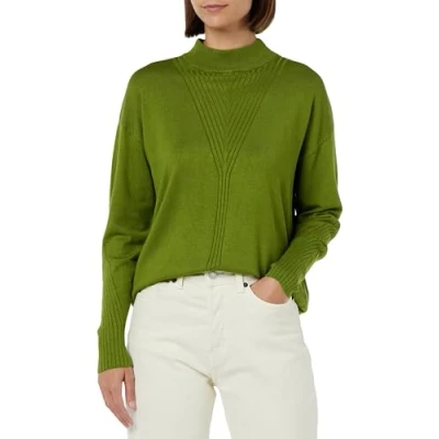 Kaffe Women's Pullover Turtleneck Long Sleeves Regular Fit Light Patterned Knit, Calla Green, L