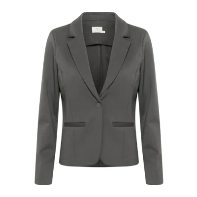 Kaffe Women's Blazer Jersey Single Breasted Notch Lapel Regular Fit Long Sleeves, Black Oyster, L