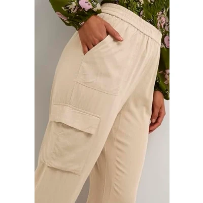 KAFFE Women's Cargo Pants Waist Cropped Length Regular Fit Elastic Cuffs, Chinchilla, 10