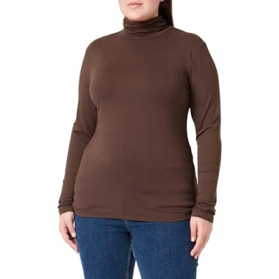 Kaffe Women's Long Sleeves Rollneck Slim Fit Jersey Tee Hip Length T Shirt Pullover, Forest Night, M