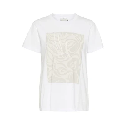 KAFFE Women's T Shirt Statement Tee Crew Neck Regular Fit Short Sleeves, Optical White, XS
