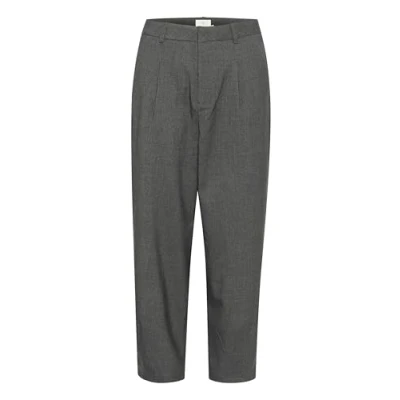 KAFFE Women's Trousers Cropped Length Tapered Legs High Waisted Regular Waist Trousers, grey melange, 14