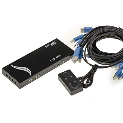 To use 4 different PCs on the same keyboard/monitor/mouse set; Compatible with all USB mice and USB keyboards, COMPLETE, DELIVERED WITH REMOTE CONTROL AND COMPUTER LUGS. Quality workmanship, guaranteed item delivered with invoice + VAT. The KVM box is connected as follows: Connect your monitor to an HDMI port, and your keyboard and mouse to a USB port. Then use the supplied cables to connect the KVM to each PC. These cords connect to the HDMI screen output and a USB port on each PC. Compatible with USB 1/2/3 keyboard and mouse. Compatible with displays with 19-pin HDMI input. Compatible with all Windows, Linux and Mac operating systems. Hot Plug connection LED display to show the selected PC. Buzzer to signal switching. Optional 5V power supply (the KVM is self-powered, external power supply will only be necessary if you use longer cables than those supplied). Resolution supported up to 4096x2160 (60Hz); Switch from one PC to another using keyboard shortcuts, buttons on the KVM front panel, or the supplied wired remote control.