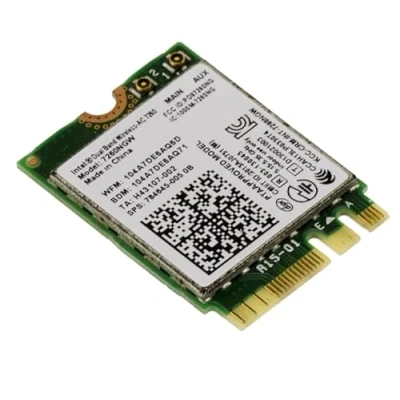 Intel 7260NGW wireless I/O M2 card designed to provide ultra-fast Wi-Fi and stable Bluetooth 4.0 connectivity. Compatible with most laptops from brands such as Samsung, Dell, Sony, Acer, ASUS, MSI, Clevo, Terransforce, Hasee, etc. Not compatible with Lenovo, IBM, and HP unless the BIOS is modified (removal of the "whitelist"). Compatible operating systems: Windows 7/8/10 (not compatible with Windows XP, Vista, or Linux). Intel 7260NGW chipset. Type 802.11ac + Bluetooth 4.0. M2 E A Key 2230 format. Dual-band Wi-Fi (2.4 GHz / 5 GHz) with speeds up to 867 Mbps, offering faster speeds, better coverage, and increased network capacity. Bluetooth 4.0 Smart Ready (low power) technology compatible with both recent Bluetooth low energy (LE) devices and traditional devices (headphones, keyboards, mice, etc.). Energy optimization with reduced power consumption to extend battery life.
