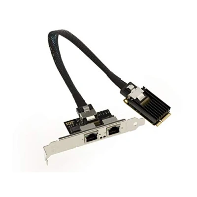 Mounts on notebook PCs' mini PCI EXPRESS slot (52-pin). Compatible with Windows 7/ Vista/8/8.1/10/11 - Server 2003/2008/2008 R2/2012/2012 R2/2016/2016 R2 Core, Linux Stable kernel version 2.4.x/2.6.x/3.x/4.x and higher, RHEL/CentOS 5.x/6.x/7.x and higher, Linux SLES 11 SP3 / SLES 12 and higher, FreeBSD 9 / 10 / 11 and higher, VMware ESX/ESXi 4.x/5.x/6.x and higher. INTEL I350 chipset. 2x RJ45 8-pin connectors. 10/100/1000Mbps transmission. Auto negotiation, compatible with all Ethernet network speeds. IEEE standards: IEEE 802.3 / IEEE802.3ad / IEEE 802.1p / IEEE 802.1Q VLANs / IEEE 802.3ab 1000BASE-T Gigabit Ethernet / IEEE 802.3u 100Base-TX Fast Ethernet. PXE, DPDK, jumbo frame functions. Full Size format. PCI-E Base Revision 1.1. Plug and Play. MiniPCIe card sold with a two-port RJ45 daughterboard, with two brackets (low and high profile). This card connects to the miniPCIe card via the high-speed miniSAS cable supplied.