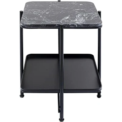 A side table that is modern, puristic and therefore particularly easy to combine The graphically designed steel frame in elegant black gives the side table stability A shelf made of real marble and another steel shelf offer space on two levels for decoration, books or lights Particularly effective as a symmetrical duo next to the designer bed or your sofa - this brings clarity to any room The combination of steel and natural stone matches the natural living style as well as the glamour chic