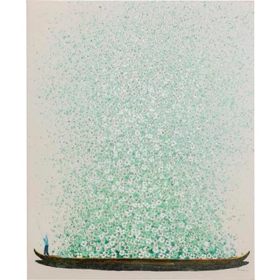 Kare Design Canvas Picture Flower Boat, Beige/Green, Painting, Pastel Colours, Asian Style, Colourful Wall Picture, Canvas, Hand Painted Details with Acrylic Paint, 100 x 80 3.5 cm