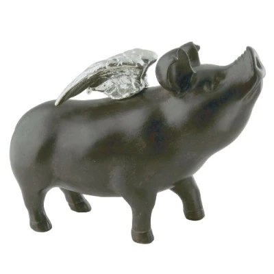 Money box Rockstar Pig with subtle slit at the back of its head and silver wings. Made of polyresin and available in various sizes. Color: Black Is Assembly Required: No