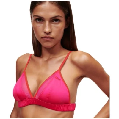 KARL LAGERFELD Bi Colour Satin Triangle Bra, Red/Pink, L