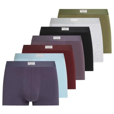 Multi colour 7-pack trunk Days of the week heat seal patch on centre front waistband Made from a sustainable light weight jersey fabric Made from light weight jersey 150gsm, 95% Organic Cotton and 5% Elastane blend Jersey available in multicolor with tonal waistband