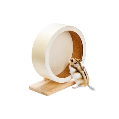 Made from untreated natural wood Closed rung gangway With cork bottom Broad pedestal Suitable for smaller ones such as dwarf hamsters, hamsters, rats Available in 3 sizes Tip When choosing a wheel, keep in mind that the wheel should be twice the diameter of the rodent's body length (the extended body) (without the tail) If the wheel only rotates with difficulty, a very small drop of oil helps.