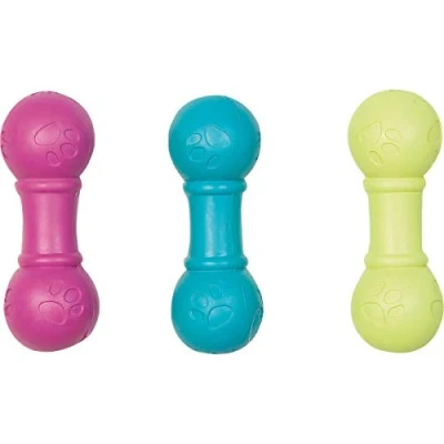 Solid rubber bone with paw print and squeaker, Length 15.5 cm, assorted colours