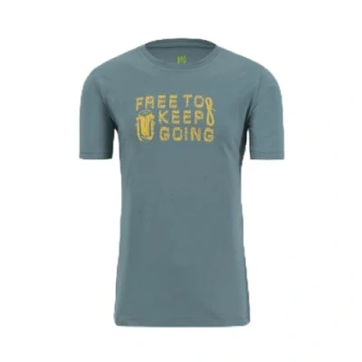 Organic cotton t-shirt 100% natural, hypoallergenic and breathable jersey. respects nature, allowing with its cultivation a saving of 91% of water compared to standard cotton cultivation The t-shirt bears the Karpos motto "Free to Keep going", a symbolic phrase that embodies the essence of living outdoors 100% COTTON