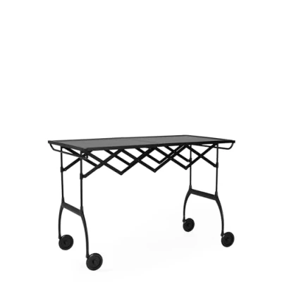Design Antonio Citterio with Oliver Löw, 1991 Plate: lacquered matt coated polyurethane Frame: painted steel Serving trolley open: L 100 x W 54 x H 69 cm Serving trolley closed: L 54 x W 20 x H 69 cm