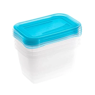 BPA free food storage container set: freeze, store, keep fresh and transport food - ideal for portioning and serving meals and storing small utensils Reliable storage: secure locking of the lid when putting on, food-safe, operating temperature from -20 °C to +100 °C Lower parts and lid nestable, can be stacked on top of each other, easy to open and close thanks to corner flap Made in Europe, easy to clean: dishwasher-safe, freezer safe, plastic (PP) free from BPA and plasticisers, no release of harmful substances Box contents: 1 x 4-piece food storage container, 4 x 750 ml, Fredo Fresh, 30673, dimensions (L x W x H): 15.5 x 10.5 x 8.5 cm, colour: blue transparent, Weight: 0.41 pounds, Manufacturer: keeeper