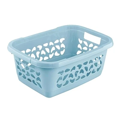 Compact washing basket for holding up to 5 kg of laundry, Ideal for sorting, collecting and carrying dry and wet laundry Easy, comfortable carrying: Sturdy handles with a textured surface and large opening for comfortable carrying, Safe design with no sharp edges Space-saving nestable, cross-stackable design for storing baskets inside or on top of one other, Air-permeable floral design prevents unpleasant odours in wet laundry Made in Europe, High-quality, sturdy plastic (PP), No release of harmful substances, Easy to clean: Wipe with damp cloth or sponge Contents: 1 Jost washing basket, Dimensions (LxWxH): 55 x 40 x 23 cm, Capacity: 32 L, Colour: Nordic Blue, Item No.: 1078068000000