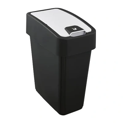 Compact premium waste bin with 2-way opening and 10 l capacity - For waste bags with a volume of 18 - 20 litres Comfortable waste disposal: Lid can be opened upwards as well as swung downwards, Pleasant soft-touch grip surface for high operating comfort Discreet design with colour-contrasting lid holder and keeeper logo integrated into the handle, Easy cleaning: Lid completely removable, Wipe with damp cloth or sponge Made in Europe - 10 years manufacturer's warranty, High quality, Stable plastic (PP), Free from BPA and other plasticizers, No emission of pollutants Contents: 1x Waste Bin Magne, 10603, Dimensions (LxWxH): 29.5 x 18 x 36.5 cm, Capacity: 10 l, Colour: Graphite Grey