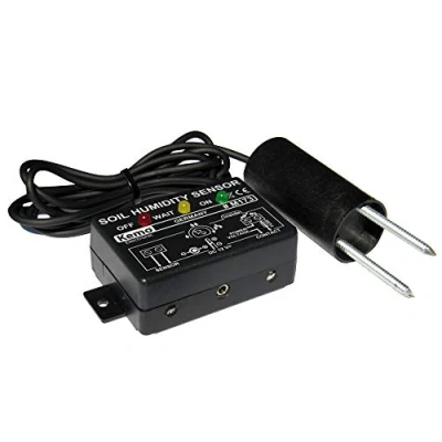 Sensor for switching on garden irrigation pump or solenoid valve Turns on when the floor is dry and turns off when there is enough moisture in the soil Measuring head is buried in soil at the depth where it should measure and connects to base unit via cable 2 metre cable included, can be extended to 20 metres at any time Operation via a standard plug-in power supply
