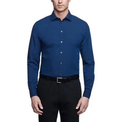 Kenneth Cole Men's Dress Shirt Regular Fit Solid, Medium Blue, M