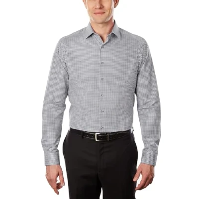 Kenneth Cole Men's Dress Shirt Slim Fit Checked and Stripes (Patterned), Grey, 16" 16.5" Neck 34" 35" Sleeve