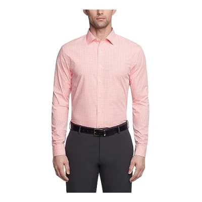 Kenneth Cole Men's Slim Fit Check Spread Collar Dress Shirt, Coral, 17" 17.5" Neck 36" 37" Sleeve