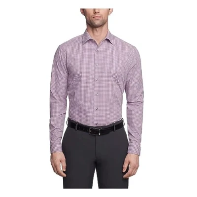 Kenneth Cole Men's Slim Fit Check Spread Collar Dress Shirt, Raspberry, 16" 16.5" Neck 36" 37" Sleeve