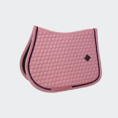 Turn heads and elevate your style with our Saddle Pad Glitter Band. This exquisite pad blends refined design with unparalleled comfort, delivering a look you’ll love and a feel your horse will appreciate. - Capture attention with a strikingly elegant border that draws every eye - Enjoy quick and hassle-free tack-up with no annoying girth loops - Prevents heat build-up with fast-drying, highly breathable materials - Ride with confidence thanks to an anatomical fit that ensures zero slipping - Express your individuality with custom embroidery options that add a personal flair What’s special With its striking glitter band, the unique-styled Saddle Pad Glitter Band adds a touch of elegance to your horse. Its exclusive design catches the eye, whether you’re training or competing. Additionally, it offers ample space for custom embroidery, allowing you to add a personal touch. Fabrics & materials Crafted from a honeycomb pattern cotton-polyester blend fabric which Is quick-drying, this saddle pad ensures your horse stays comfortable even during intense training sessions. The inner padding is breathable, providing effective cushioning between the saddle and your horse’s back. The stitched Kentucky logo, made from premium vegan leather, showcases Kentucky quality from afar. Shape & size Designed to perfectly fit your horse’s back, this anatomically shaped saddle pad alleviates wither pressure and ensures no slipping, pressing, or rubbing. Enjoy a secure, comfortable ride that enhances your confidence and control. Choose from six modern yet timeless colors, available in both jumping and dressage styles for versatile use. Care guide Caring for your Saddle Pad couldn’t be easier. Simply toss it in the washing machine at 30°C for a thorough clean. To preserve its exceptional quality, we recommend using our protective wash bag. For drying, hang it outside on a sunny day to maintain its shape-avoid the dryer to keep it looking and performing its best.