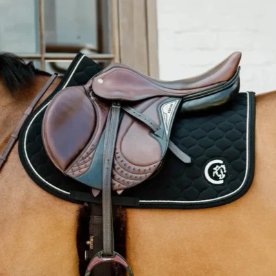 The Onion Quilt Saddle Pad with 3D Logo stands out with its elegant onion quilting and sporty Kentucky logo touch. Perfect for both competitions and daily training. · Elegant onion quilting for a sophisticated look · Crafted to fit your horse perfectly, reducing pressure and avoiding friction · Provides exceptional cushioning to protect your horse’s sensitive back · Breathable, moisture-wicking materials for maximum comfort · Timeless elegance enhanced by a dynamic 3D logo and stylish edging What’s special The Onion Quilt Saddle Pad blends classic elegance with modern innovation. The unique twisted trim and dynamic 3D logo create a standout appearance, especially when paired with our matching fly veil. Its anatomical shape and shock-absorbing features offer unbeatable comfort, and the absence of saddle straps simplifies both saddling and unsaddling. Fabrics & materials Made from a high-quality cotton-polyester blend, this saddle pad offers unmatched softness and exceptional dirt resistance. Horsehair has a tough time sticking to it! The elegant onion quilting keeps the moisture-wicking, breathable padding securely in place, ensuring stellar performance and long-lasting durability. It retains its excellent functionality and sleek look, even with regular washes. Shape & size The anatomical shape ensures a flawless fit with no pressure or friction points. The saddle pad contours perfectly to your horse’s back, offering exceptional cushioning between the saddle and their spine. Available in both dressage and jumping styles. Care guide Cleaning the Onion Quilt Saddle Pad could not be easier. Simply machine wash it at 30 degrees. To preserve its quality, use our protective wash bag. Dry it outdoors in the sun and avoid using the dryer to maintain its shape.