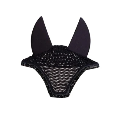 Our Fly Veil Glitter Stone is a combination of the modern American look and Kentucky Horsewear’s expertise. - Fly protection with American look - Glitter Stone binding - Quality knitting by hand - Extended neck piece to prevent the fly veil from slipping What’s special The Fly Veil Glitter Stone protects the horse’s ears against flies while riding. They remain equally soundproof. Therefore the horse doesn’t get distracted by noise. Fabrics & materials This fly veil is hand knitted for better durability, finished with a fancy piping and binding in classy glitter stone. The Fly Veil Glitter Stone does not have a visible logo, therefore rider or sponsors can embroider their own logo. Shape & size The material around the ears is stretch and slim fit. The soundproof ears are slightly thinner than the ones of other brands, which offer a perfect fit and don’t slide off. The neck part is longer so it can’t slip. Care guide Hand washing only.