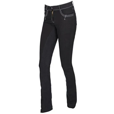 Women's full seat breeches made of stretchy faux leather Two front pockets; a small, zipped "cent" pocket; two eye-catching back pockets Leg cuffs with elastic band; contrast stitching around the pockets; back pockets with embroidery and logo With the material properties and features, the Jodhpur model is an optimal alternative for riders who prefer the casual style in the saddle. Material: 73% cotton, 25% polyester, 2% elastane; trim: 60% polyamide, 40% polyurethane; easy care and machine washable at 30°C