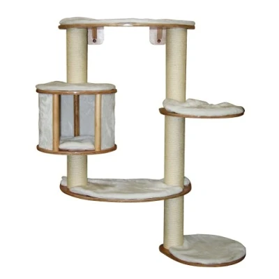 For wall mounting Plush cushion with velcro strap, detachable Cave: diameter 40 x 30 cm. height: 117 cm. lie down area: diameter 40 cm. medium lying surfaces: 70 x 40 cm. post: diameter 10 cm Sisal is glued on the post