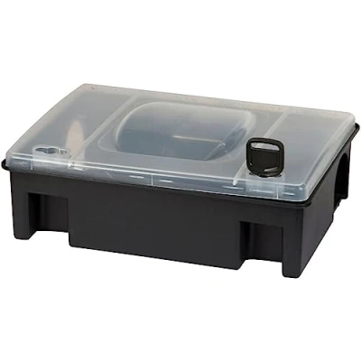 Robust plastic bait station for rats Includes key to secure bait from unauthorised people Optimal size to place even in places with small spaces Transparent lid makes it easy to control