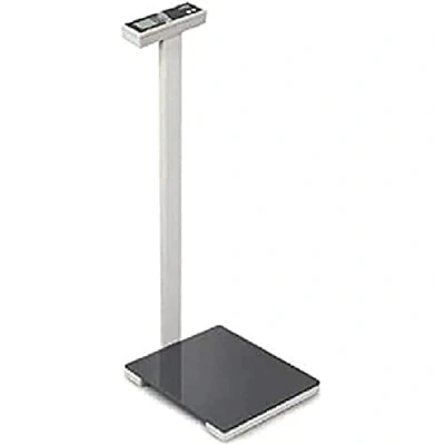 This personal scale is the ideal measuring instrument for elderly care, paramedics, fitness clubs or in the private sector and can handle weighing overweight persons weighing up to 250 kg The display device is easy to operate through the column which is firmly fixed to the scale and the weight can be read easily, even under poor lighting conditions Sturdy glass weighing plate for secure, comfortable standing position For easy and hygienic cleaning Comes with a plug adapter for UK, EU and US
