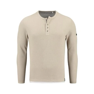 Made from high-quality cotton with polyester content Stylish waffle look Versatile for casual styles Trendy layer look Crew neck with stylish button placket
