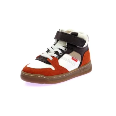 Kickers Kickado Unisex Hightop trainers for kids, Size: 8.5/9K, Marron blanc leather and imitation