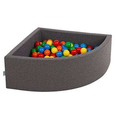 KiddyMoon Quarter Square Ball Pit Pool 90 x 30 cm / 200 Balls Diameter 7 Pits for Babies Play Toddlers Made in the EU, Dark Grey: Yellow/Green/Blue/Red/Orange