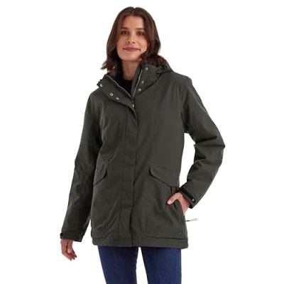 killtec Women's Damen Jacke Functional Outdoor Jacket Waterproof with Zip Off Hood, Dark Olive, 42