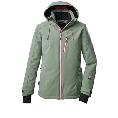 killtec Women's Ski functional jacket with zip off Hood and snow guard, neon pink, 42