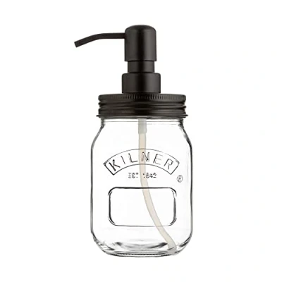 SOAP DISPENSER | The Kilner Liquid Soap & Lotion Dispenser is designed for use in the kitchen and bathroom. Liquids are dispensed easily with the durable metal spring pump mechanism. SET | The set contains one 500 millilitre Kilner Glass Jar and one Stainless Steel Pump. TAKING CARE | The pump mechanism is made from rust resistant 18/10 stainless steel material and coated with a stylish matt black finish. The glass jar can be used in the dishwasher. The metal pump lid needs to be hand washed and dried straight away. CREATE & MAKE | The Kilner Create and Make range includes accessories to help you create healthy homemade food and drinks, from fresh sauces and coffee to homemade butter. Our innovative products such as the Kilner Soup Jar and Breakfast Jar set make eating-on-the-go easier than ever! KILNER | The original Kilner Jar with its distinctive pressure seal and iconic design is as much-loved and successful now as it was over 179 years ago.