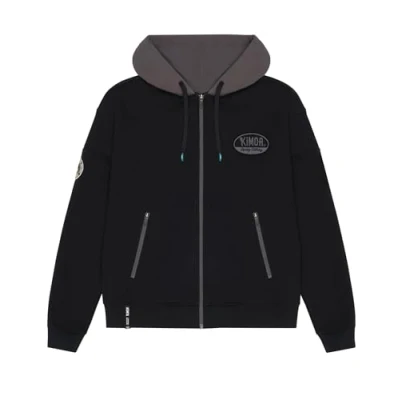 The Kimoa Patch Racing Jacket in black is the perfect choice for those looking for style and functionality in a garment. With a contrasting hood in grey, this jacket combines modern design with comfort. Kimoa Racing's embroidered oval patch on the left chest adds a distinctive touch, making this jacket a key piece in any motorsport lover's wardrobe. Ideal for everyday wear, this jacket suits different styles. The jacket includes a practical kangaroo pocket divided by a zip that extends to the collar, offering security for your personal items. This feature makes it a versatile men's zip sweatshirt, ideal for outdoor activities or for a casual look. In addition, drawstring stoppers with contrasting light blue logo add a stylish detail that won't go unnoticed. With this jacket, every detail has been thought to improve your wearing experience. The design also includes a round embroidered Kimoa Factory Team Racing patch on the right sleeve, showing a helmet drawing and the number 14, reflecting Kimoa's passion for racing. This men's hoodie is not only a functional garment, but also makes a style statement for racing and fashion fans. Every element of this jacket is designed to stand out and make you feel part of a vibrant and passionate community. Made with 60% organic cotton and 40% recycled polyester, this Kimoa jacket is a sustainable and environmentally friendly choice. Its composition ensures exceptional softness, ensuring that every use is comfortable and enjoyable. The black felt label with the "Kimoa recycled product" logo in off-white reaffirms the brand's commitment to sustainability and responsible fashion, making it an ideal choice for those who value quality. To keep the jacket in perfect condition, a machine wash at 30 degrees Celsius is recommended, avoiding the use of bleach. In addition, it is recommended to iron at low temperature and do not tumble dry or dry clean. By following these simple care instructions, you can enjoy this women's hoodie for a long time, making it an essential garment. The Kimoa Patch Racing Jacket is a symbol of style, functionality and commitment to sustainability.