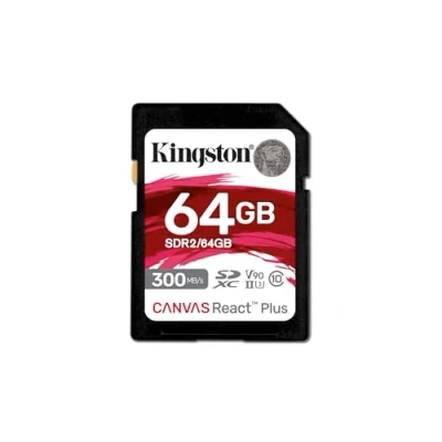 Kingston Canvas React Plus 64GB SDXC Memory Card UHS-II 300R/260W U3 V90 for Full HD/4K/8K - SDR2/64GB Ultimate speeds to support professional camera use Capture 4K/8K Ultra-HD high-speed shots without dropping frames Top-of-the-line performance for professional content creators Durable