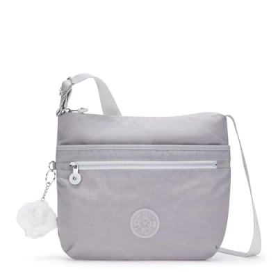 Adjustable shoulder strap 2 Zipped front pockets Zipped rear pocket Zipped main compartment with: o Zipped pocket o Mobile phone pocket o Pouch pocket for wallet o Pen loop o Key fob Round Kipling logo