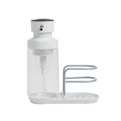 Soap pump caddy keeps washing-up liquid and sponges organised and easy to access The dispensable pump bottle can be used one handed Made with a rust-resistant satin wire frame Capacity: 350ml (11.8fl.oz) Wipe clean only Includes a Lifetime Limited Warranty and one-year hassle-free replacement