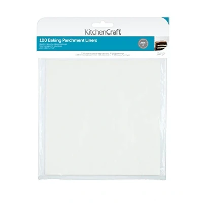 KitchenCraft Baking Parchment Roll, Paper for Baking, Multifunction, 20 cm (8") Square (Pack of 100), White