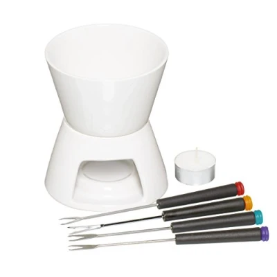 What You'll Get - KitchenCraft chocolate fondue set with four stainless steel forks ceramic bowl and stand, ideal for sharing moments with friends and family The Perfect Party Centrepiece - Make your party memorable with this chocolate fondue set that can be used for dipping sweets, fruit, or biscuits and is a fun alternative to traditional desserts. Colour Coded Forks for Easy Use - With the four stainless steel fondue forks being colour-coded, your guests can easily identify their own Simple to Use and Store - This compact ceramic fondue set comes apart in two pieces, making it easy to clean and store after your party. Quality Guaranteed and Easy to Clean - This fondue set is dishwasher safe, saving you time and hassle after your event and comes with a 12-month guarantee,