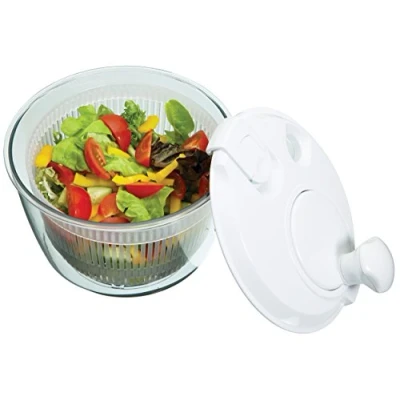 What You'll Get - Small KitchenCraft salad spinner for dressing and drying salads fast to streamline mealtimes Dress As You Go - It's a salad dryer and dresser in one, simply add your fave dressing through the opening and spin to cover the leaves Easy To Handle - Features an easy turn knob, opening for salad dressing, a locking lid and soft feet for extra stability Built In Colander And Bowl : Use the inner basket to wash leaves, and the outer acrylic basin as a salad bowl, and you'll cut down on washing up Guaranteed Quality - The salad spinner is dishwasher safe and includes a 12 month guarantee